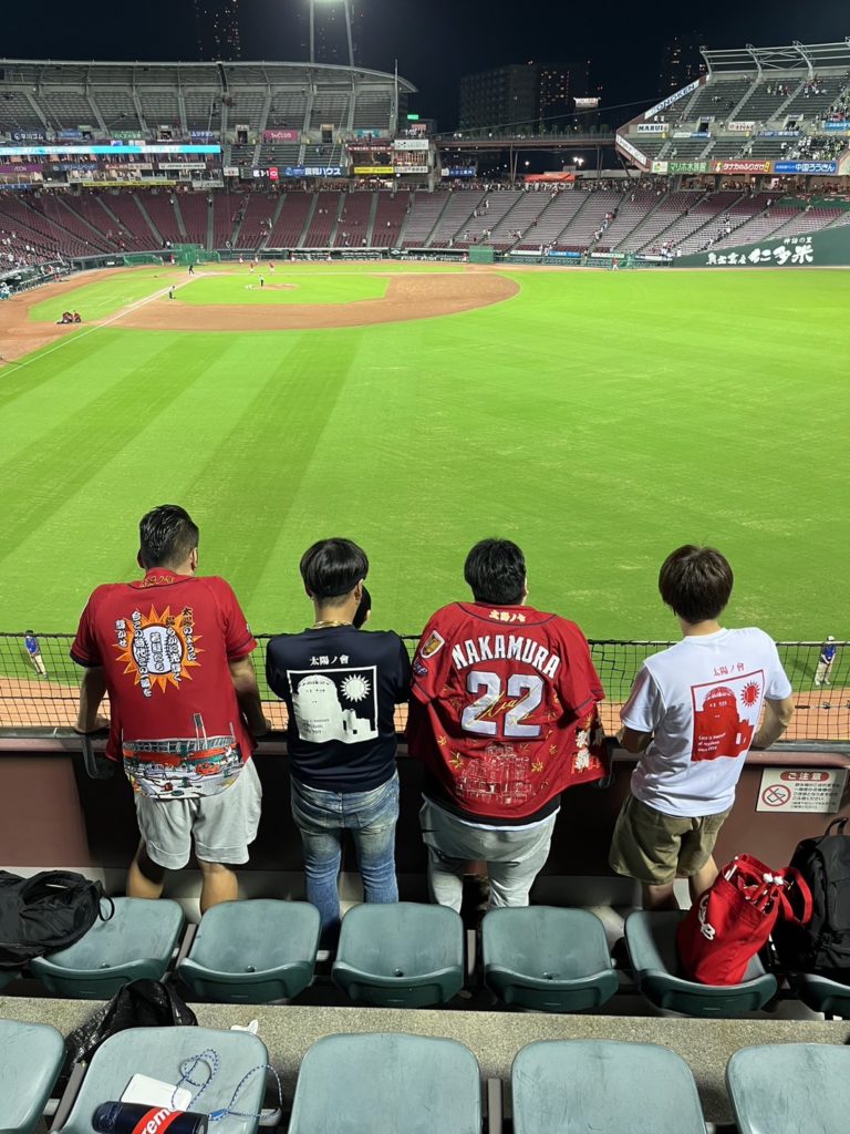『太陽の會』は、わたしが同級生や仲間達と、広島カープやドラゴンフライズ、サンフレッチェなど、広島の色々なスポーツの応援を通じて、広島を盛り上げ応援するチームとして作りました。
